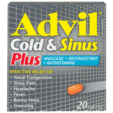 Advil Cold & Sinus Plus provides effective relief when you need it most. It helps reduce swelling of the nasal passages - so you can breathe easy. And it combines all the powerful symptom and pain relief you trust from Advil Cold & Sinus with an antihistamine to address runny nose and sneezing.