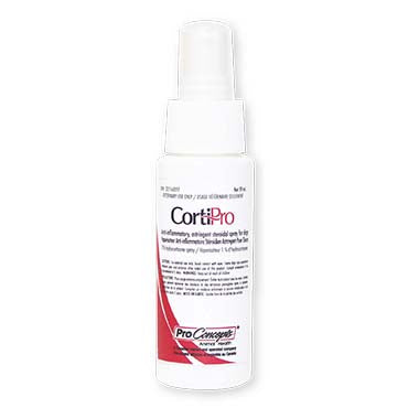 CortiPro Spray is an anti-inflammatory steroidal spray for use as an aid in the treatment of acute moist pyotraumatic dermatitis (hot spot) in dogs by providing temporary relief of inflammation and pruritis.