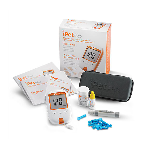 - COMPLETE KIT: Starter kit contains everything need to measure your pet’s blood glucose. Includes a meter, meter case, test strips, logbook, lancing device, control solution and lancets.