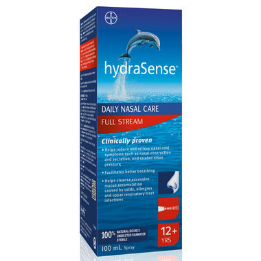 hydraSense Full Stream is effective for relieving cold and allergy nasal symptoms, and can be used for those recovering from endonasal surgery. Try Full Stream for a more intense nasal cleansing experience - it is clinically proven to help reduce and relieve nasal cold symptoms such as nasal obstruction and secretion, and related sinus pressure to facilitate better breathing. hydraSense Full Stream is made with 100% natural-sourced undiluted seawater without the use of medication or preservatives.