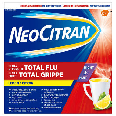 NeoCitran Ultra Strength Total Flu Night Lemon 10 Pouches