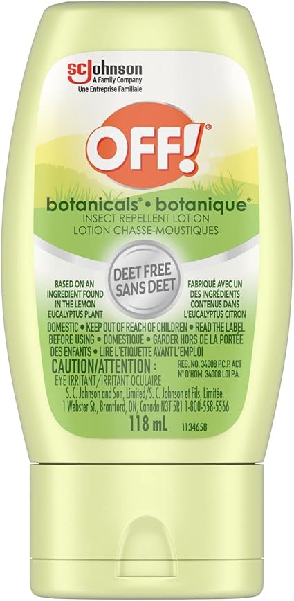 - One 118 mL bottle of OFF! Botanicals DEET Free Insect and Mosquito Repellent Lotion protects against black flies, gnats, no-see-ums and mosquitoes