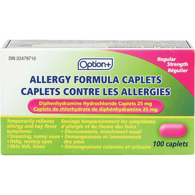OPTION+ Allergy Formula Caplets Diphenhydramine 25mg, 100 caplets