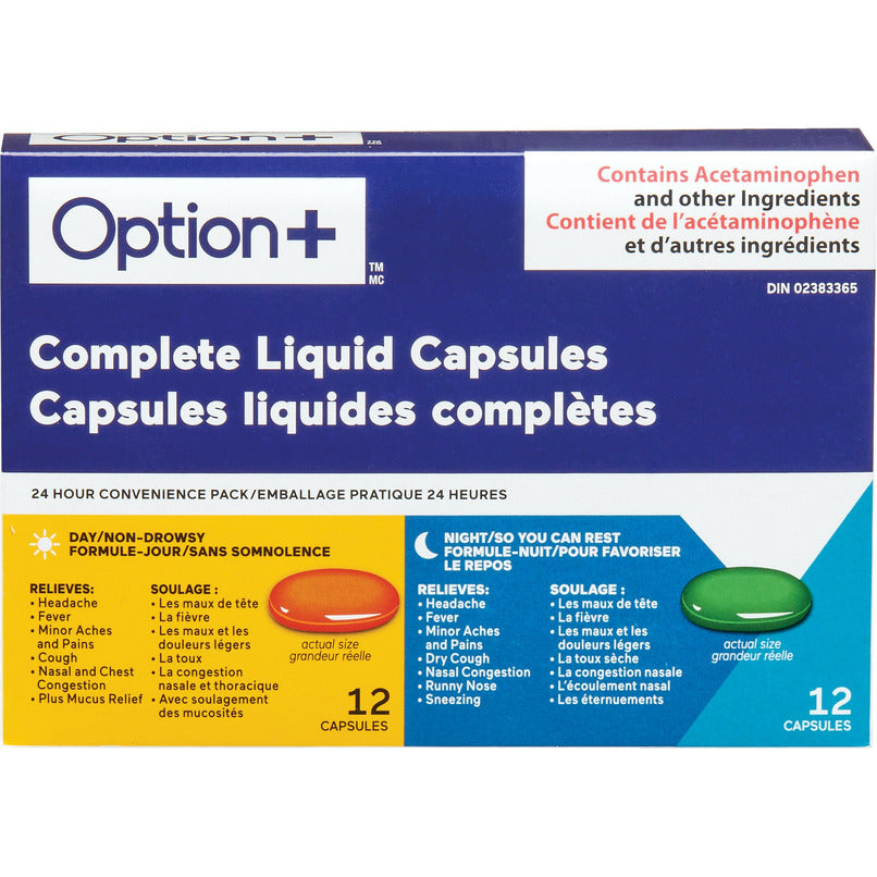 Option+ Complete Cough & Cold Liquid Capsules Combo Pack 12+12 Caps