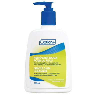 Option+ Gentle Skin Cleanser is a mild formulation for normal to dry skin and is safe for everyday use on face, hands and your entire body. This fragrance- free formula is non-comedogenic, oil free and pH balanced. Gentle enough to use as a makeup remover.