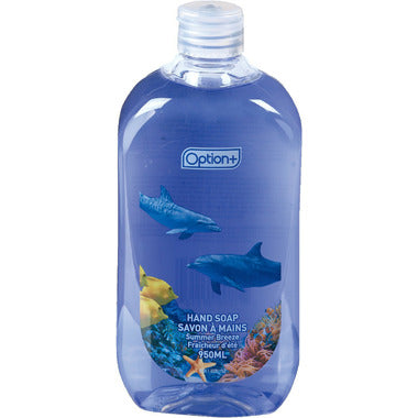 Option+ Summer Breeze Hand Soap thoroughly cleanses your hands and moisturizes, leaving your skin feeling soft and smooth. Use this large format to refill your pump containers.
