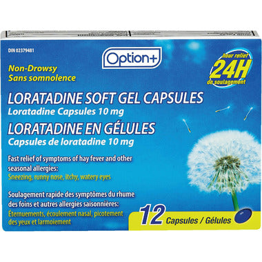 OPTION+ Loratadine Soft Gel Capsules 10mg, 12 capsules