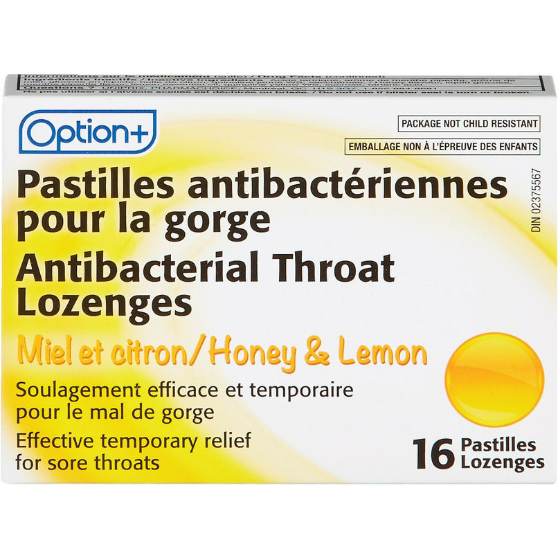Option+ Antibacterial Throat Lozenges Honey & Lemon 16 Lozenges