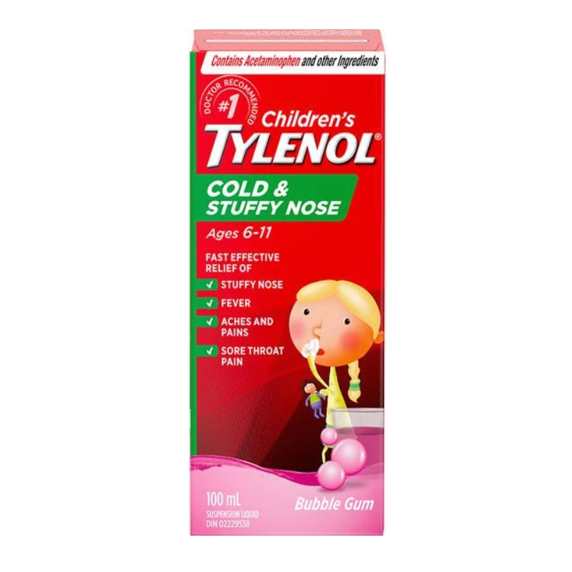 Try Children’s Tylenol Cold & Stuffy Nose liquid. Children’s Tylenol Cold & Stuffy Nose liquid is easy-to-administer and works to relieve your child’s stuffy nose, fever, aches and sinus pain. With their symptoms relieved, they can get on with their day—as can you.