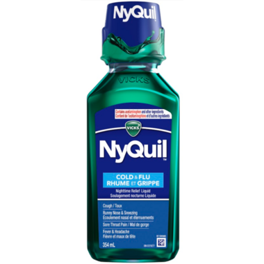 - Helps you get the restful sleep you need by relieving major cold/flu symptomsTry NyQuil Cold & Flu Multi-Symptom Relief—the nighttime sniffling, sneezing, coughing, aching, fever, so you can feel better the next morning medicine.