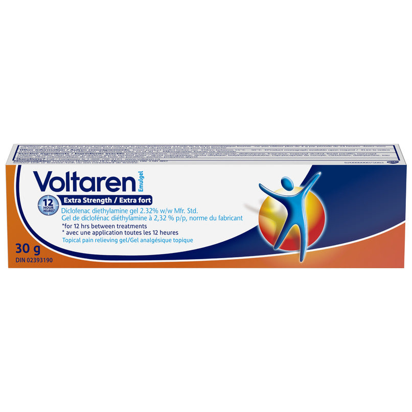 Voltaren Emulgel Extra Strength is indicated for the relief of aches and pain associated with acute, localized minor muscle or joint injuries such as sprains, strains or sports injuries (e.g.ankle sprain, shoulder strain, or back muscle pain).