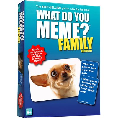 Here’s how it works — compete with your friends and family to create the funniest memes. Do this by using one of your dealt caption cards to caption (get it?) the photo card in each round.